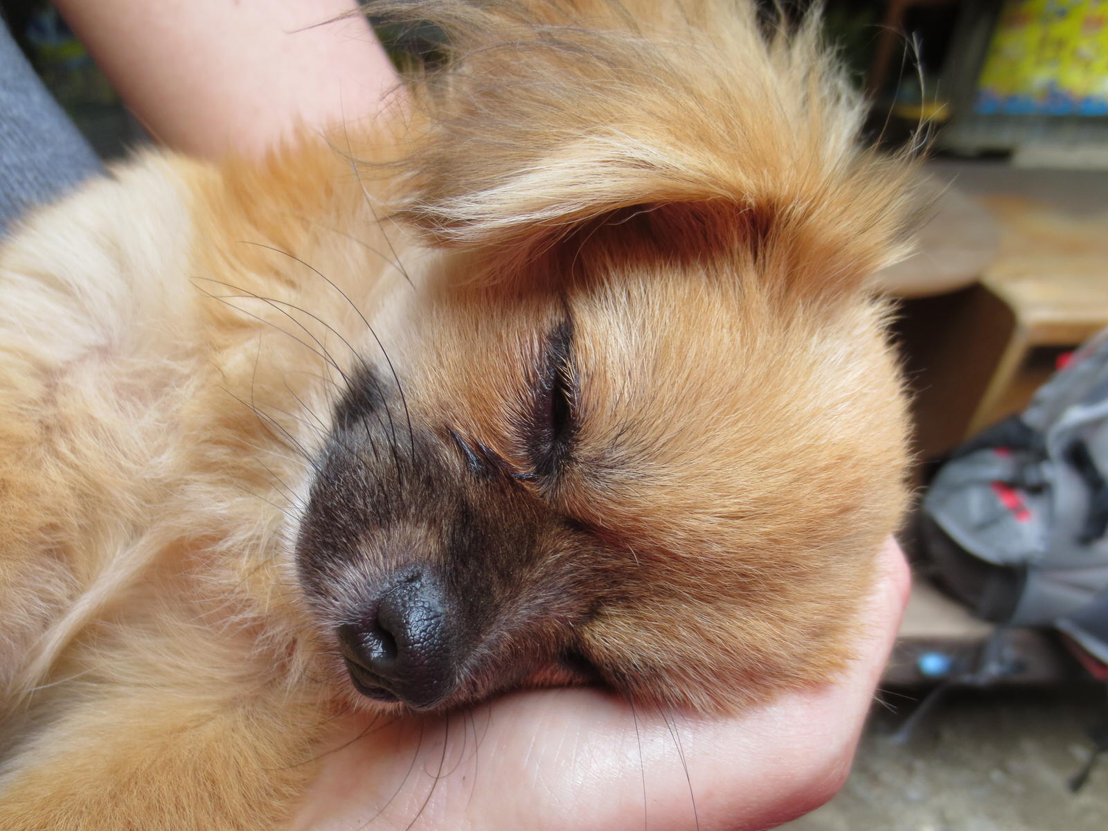Petite pause dîner et j’ai maintenant un nouvel ami. Il est tombé endormi dans mes bras! Onnnnnnnn!