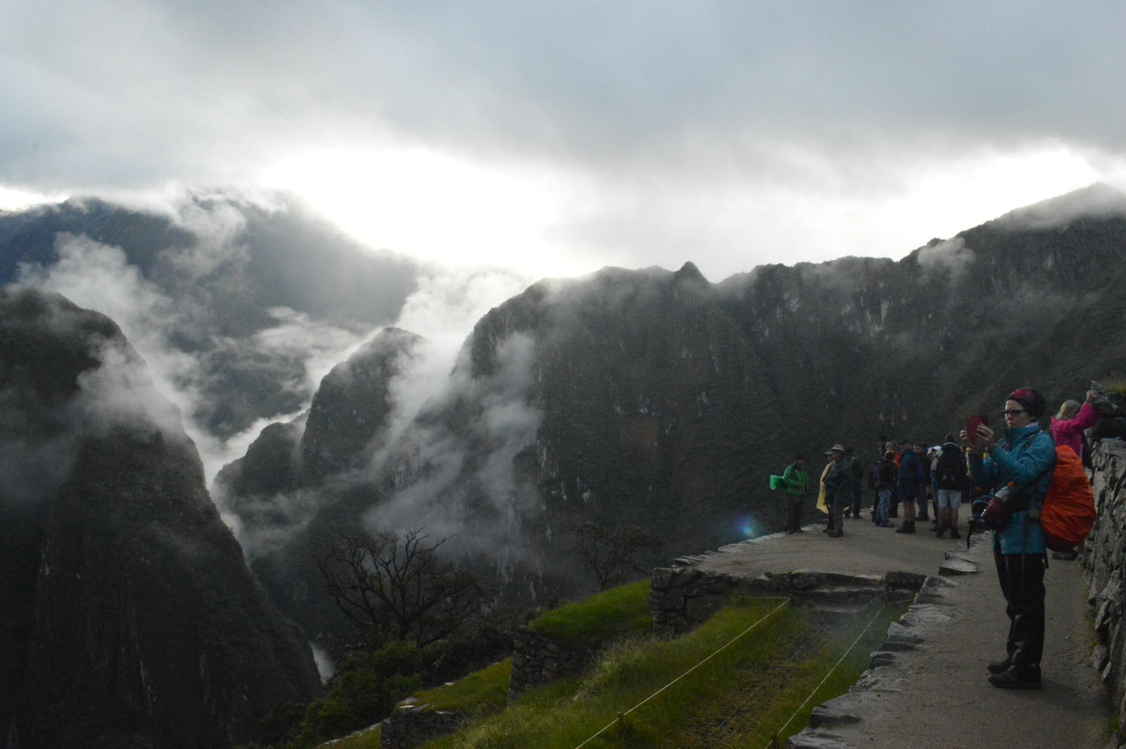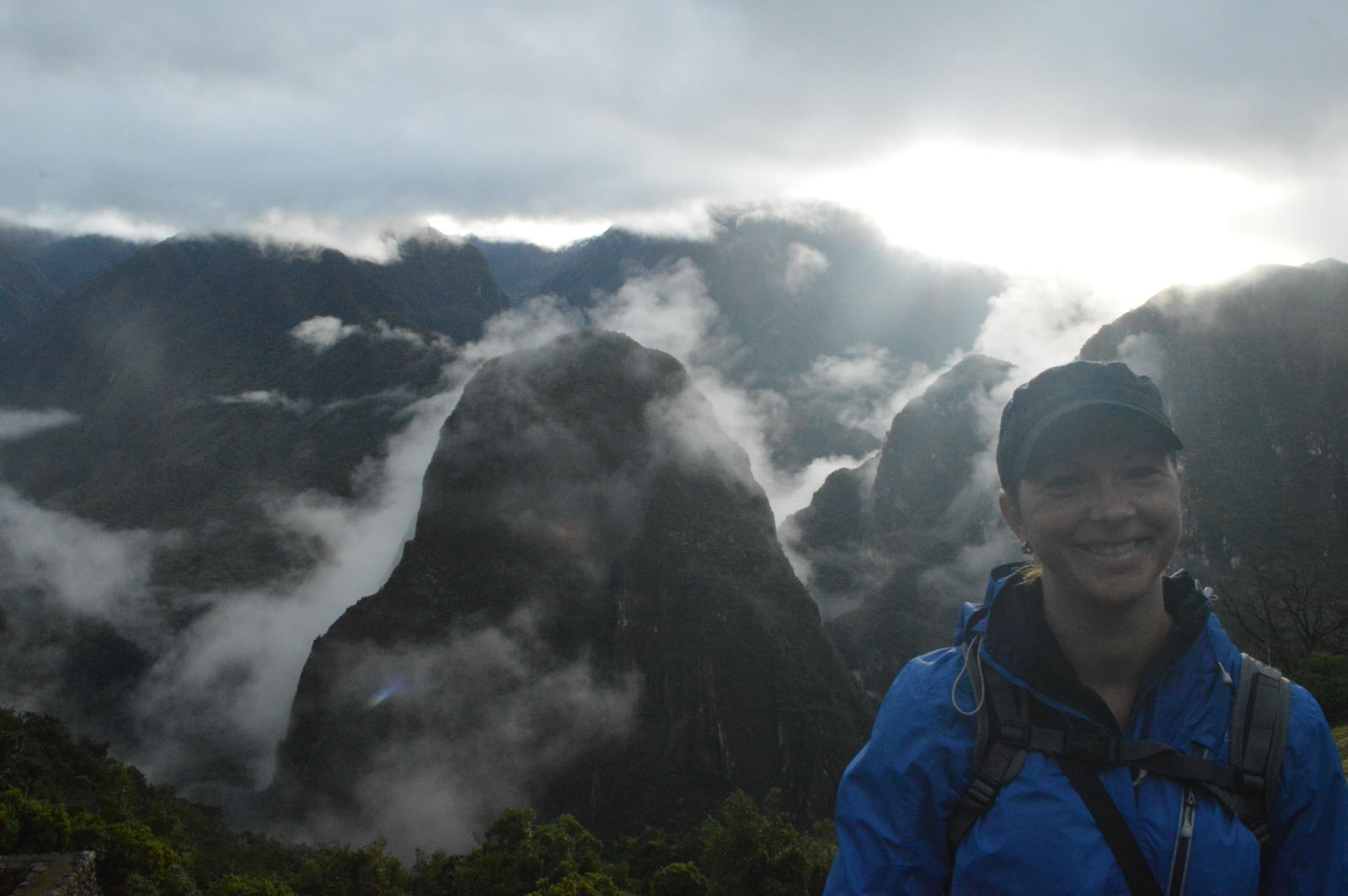 Bien sûr avec toute cette pluie nous n’apercevons pas le Machu picchu car il est dans les nuages. Un spectacle magnifique au lever du soleil!