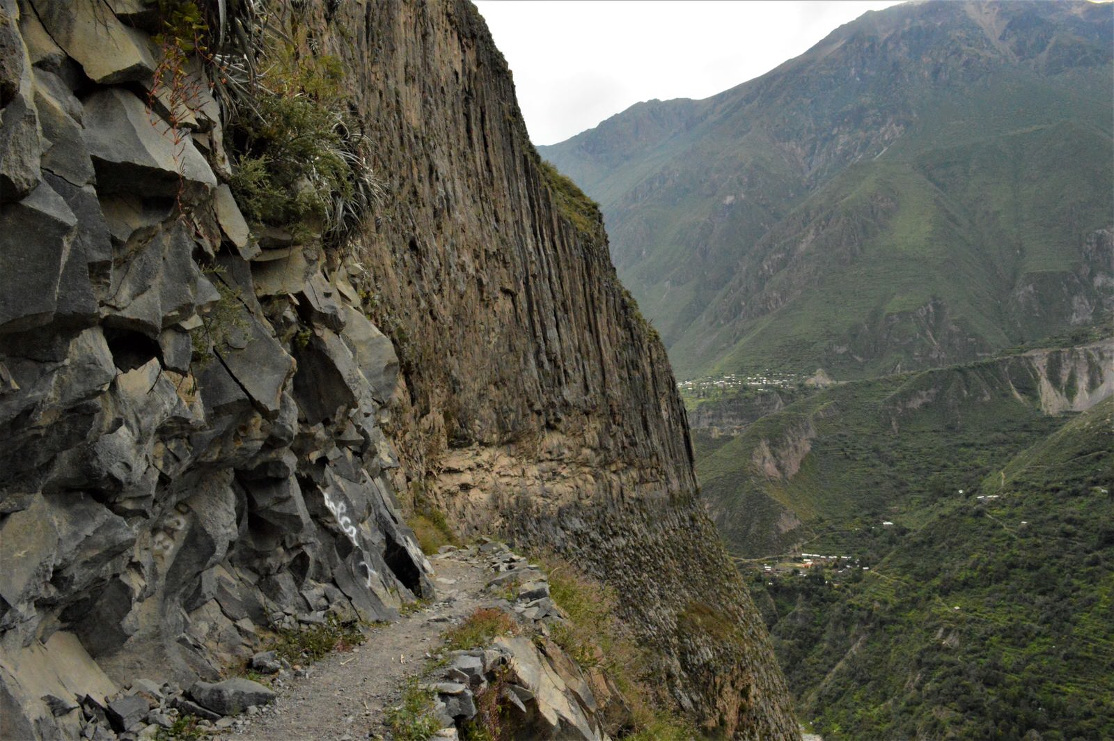 Une autre journée riche en paysages à couper de souffle! Les efforts effectués pour voir cet endroit magnifique sont tellement gratifiants! On déjeune et on part! Nous marcherons pendant environ 1h30 jusqu’au village de Tapay à 2900m. Hier, à ce niveau du canyon, nous étions de l’autre côté.