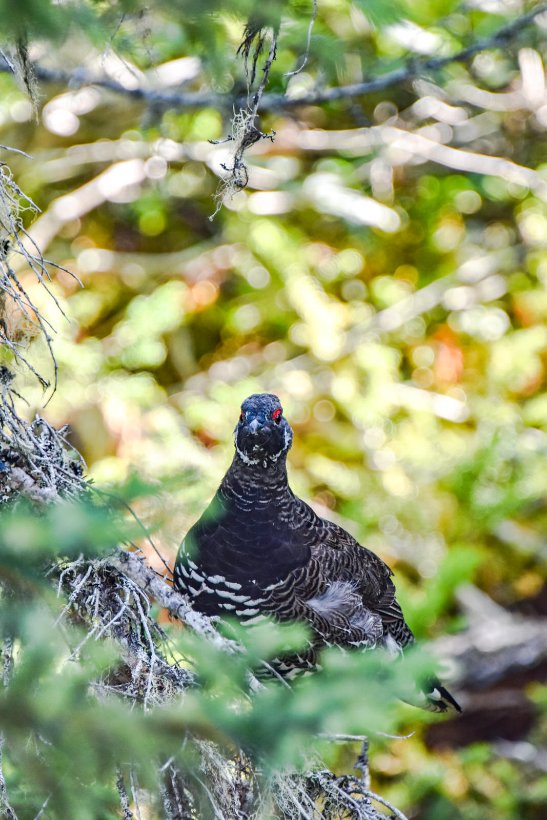 Attention, vous pourriez rencontrer monsieur le tétras du Canada! Peu farouche, ce monsieur!