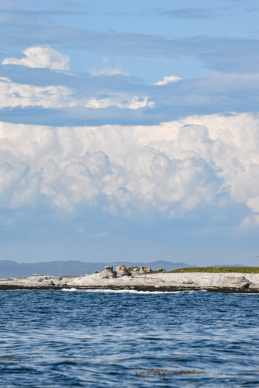 Pour conclure cet article, je vous amène à Longue-Pointe-de-Minguan, endroit dont je n’ai pas pu profiter, car il y a eu du brouillard pendant 2 jours! Mon excursion de 3h prévue qui incluait l’observation des perroquets et de débarquer sur l’île a été annulé. Puisque nous continuons notre route vers le nord, on m’a dit lorsque je repasserais dans 2 jours de venir voir s’il reste de la place sur un bateau. Donc à notre retour, il restait de la place, mais seulement sur le tour qui dure 1h30, sans débarquer sur l’île. Une belle excursion à faire en Minganie!