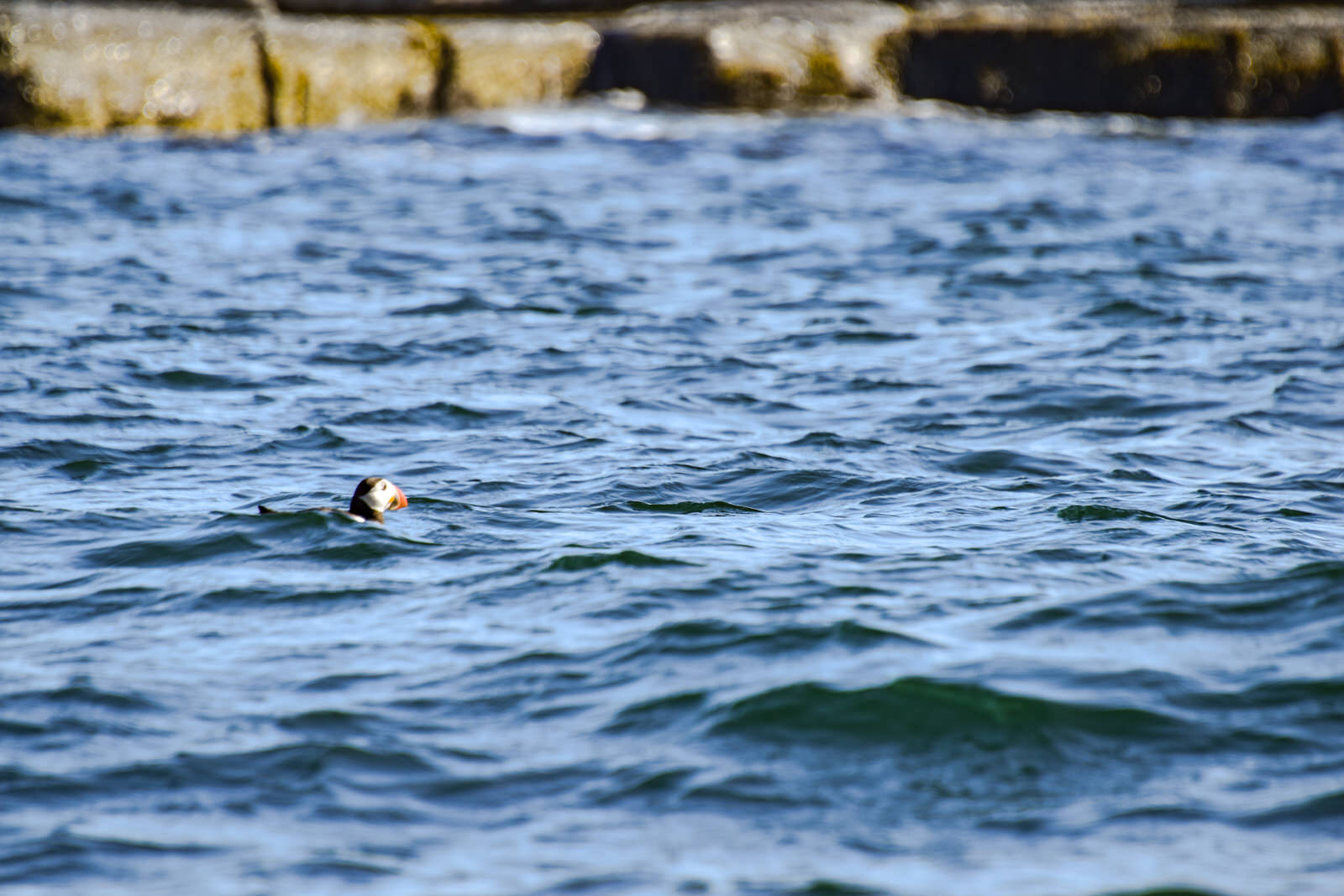 Celui qui vole la vedette de cette expédition est le macareux! J’ai été très surprise de la grosseur! Je m’attendais à un oiseau beaucoup plus gros. Il peut faire entre 30 et 60 cm seulement. Ça n’a pas été facile de le prendre en photo, il y avait beaucoup de vagues et ils sont presque constamment en mouvement.