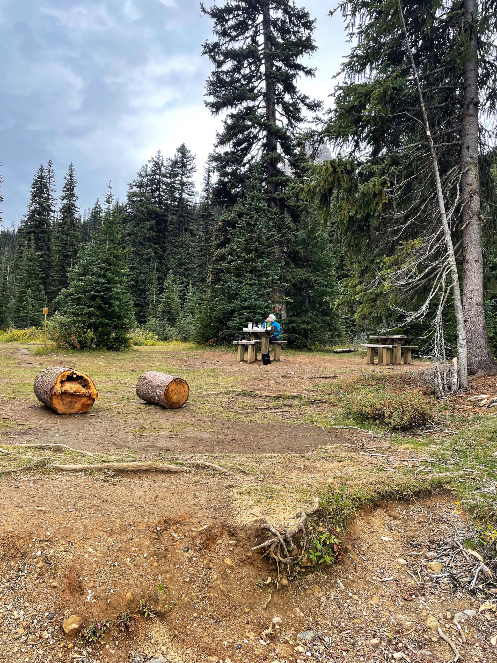 Après cette bonne journée de marche, nous étions heureuse d’aller installer notre tente à côté de la rivière Little Yoho. Aucun site de camping n’est assigné, premier arrivé, premier servit. Vous devez bien sûr avoir votre permis avec vous. Pour être honnête avec vous, le camping lac Yoho est beaucoup plus beau. Vous aurez un camping au milieu de quelques sapins et si vous être chanceux, avec vue sur la rivière.