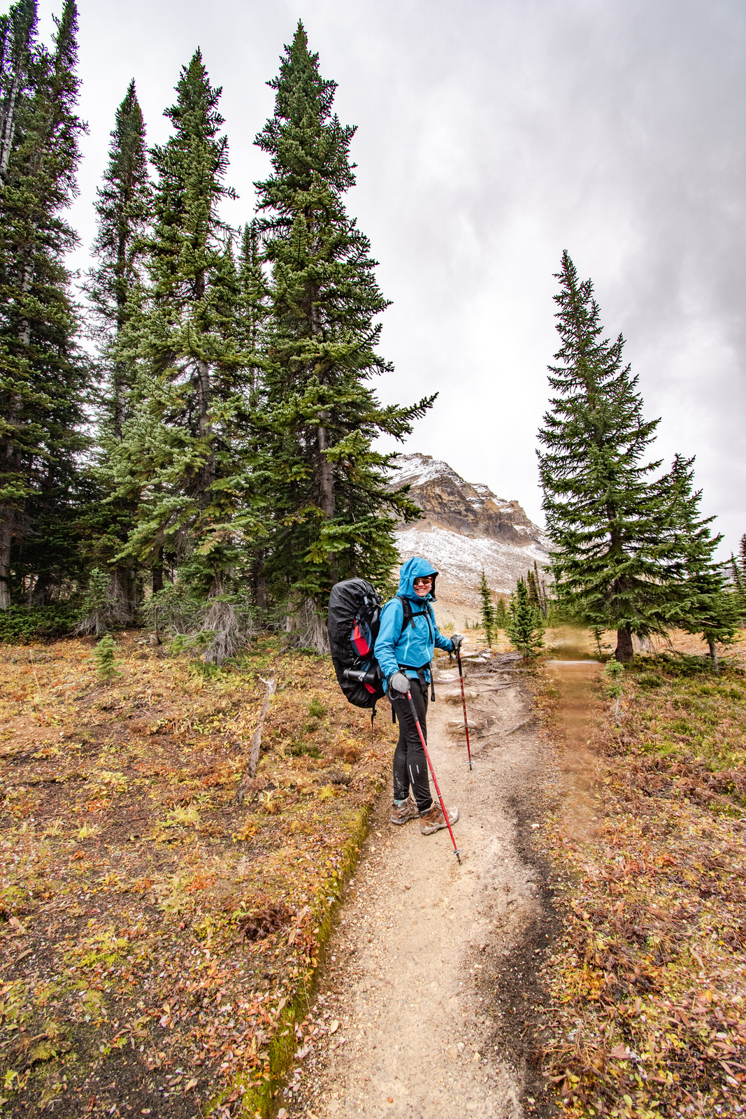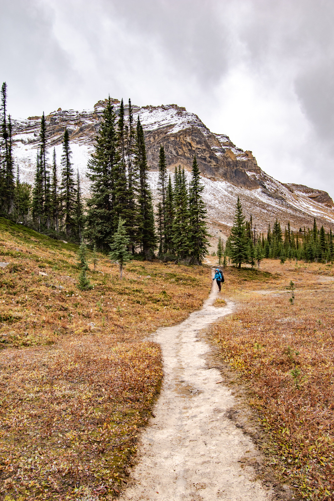 Peu de temps après notre départ du lac Yoho, nous débouchons sur la portion du sentier qui nous donneras une vue à 180 degrés sur la vallée. Au loin, et ce toute la journée, nous pouvons entendre la chute Takakkaw. C’est fou qu’elle résonne aussi loin!