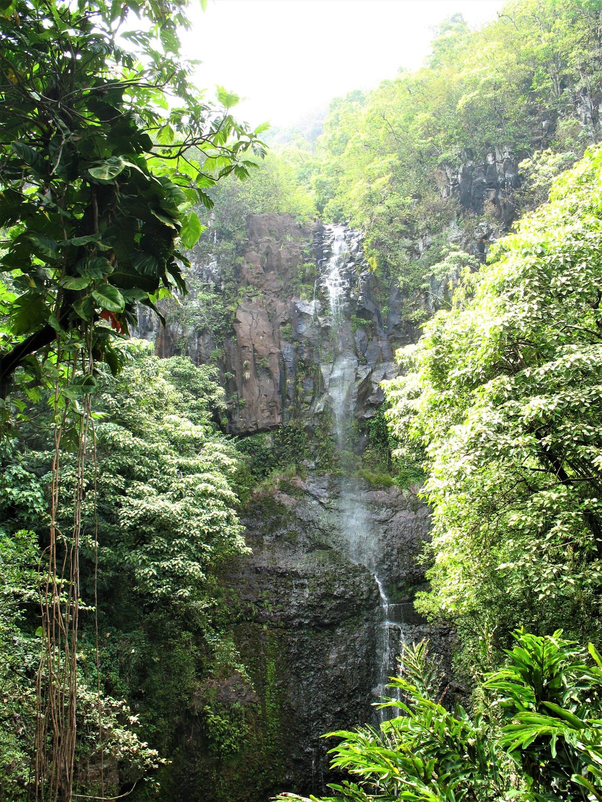 Avril 2008 – La partie est de Maui est en autre célèbre pour sa fameuse Hana Road. Riche en végétations luxuriantes,elle compte 600 virages et 54 ponts à 1 voie. Un plaisir de se promener à travers cette magnifique forêt verdoyante! Beaucoup de passages sont pour 1 voiture seulement, il faut alors attendre chacun notre tour pour passer. Si vous parcourez cette route en été, il faut s’attendre à beaucoup d’achalandage.