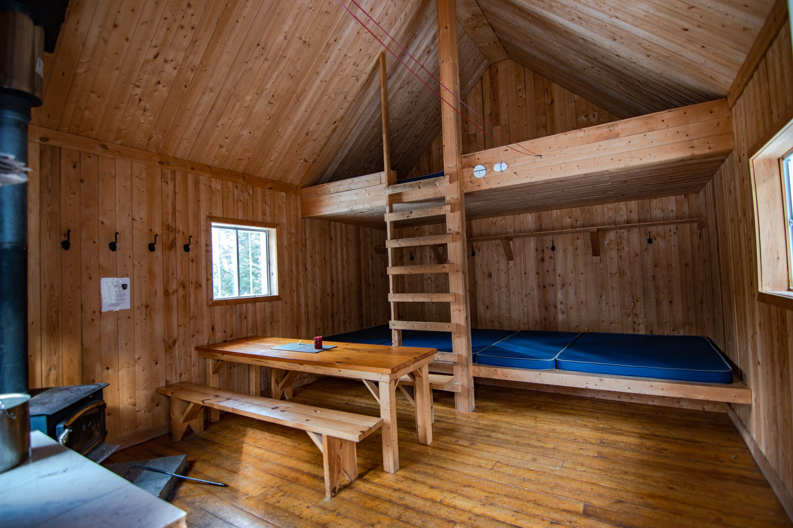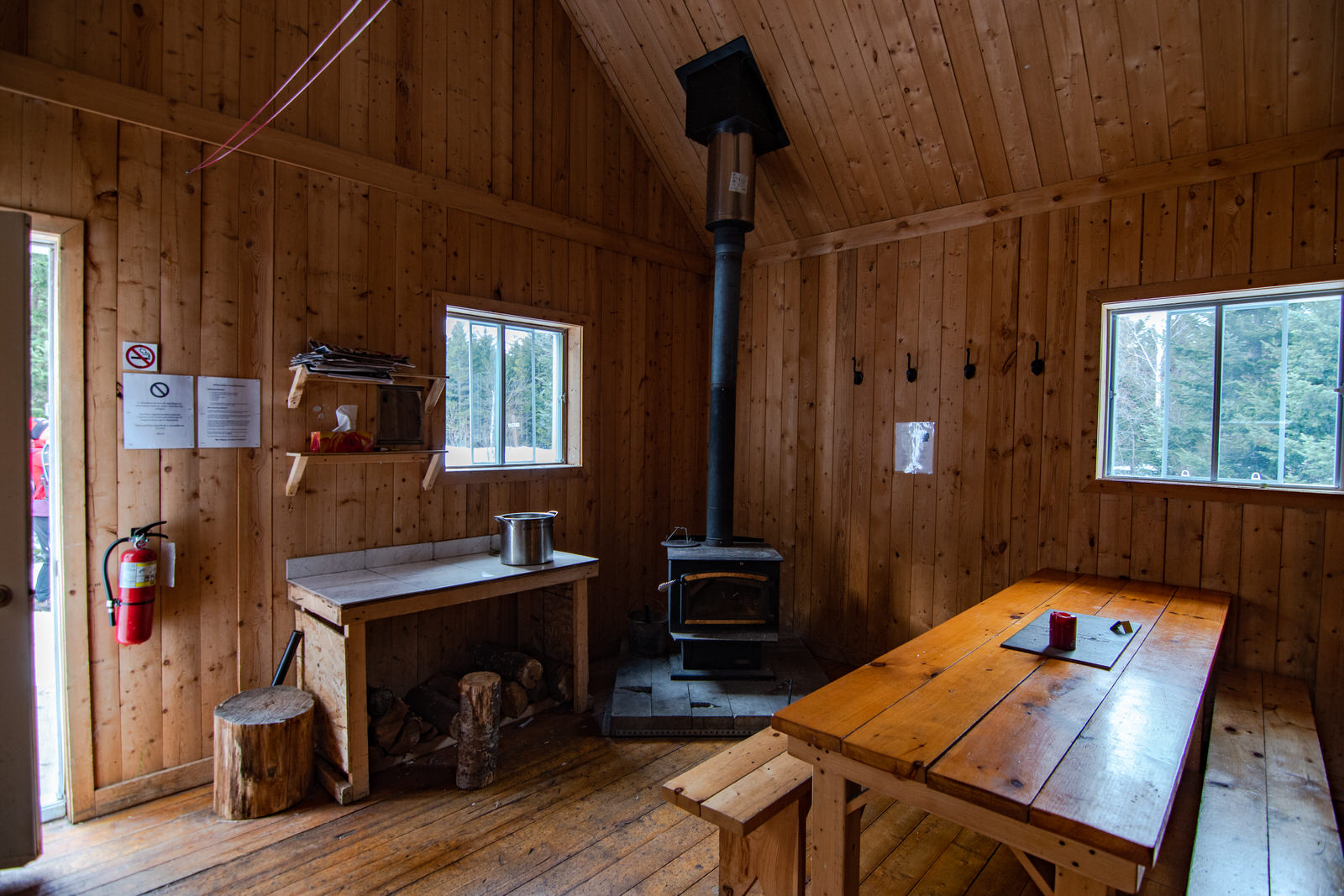Refuge Castor est privé. Il y a de la place pour 8 personnes. Le prix est de 115$ la nuit pour le refuge entier. Il y a une toilette sèche à l’extérieur. Il n’y a pas d’eau courante ni électricité.
