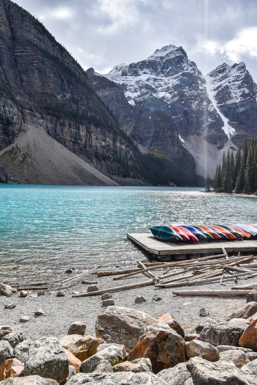 Tous s’entendent pour dire que le Lac Moraine à un petit je ne sais quoi… à mon avis il est encore plus grandiose que le Lac Louise! Victime de sa popularité et ayant un très petit stationnement, nous devons prendre la navette pour nous y rendre. Nous achetons notre billet par téléphone et en 10 minutes le tout est réglé.
