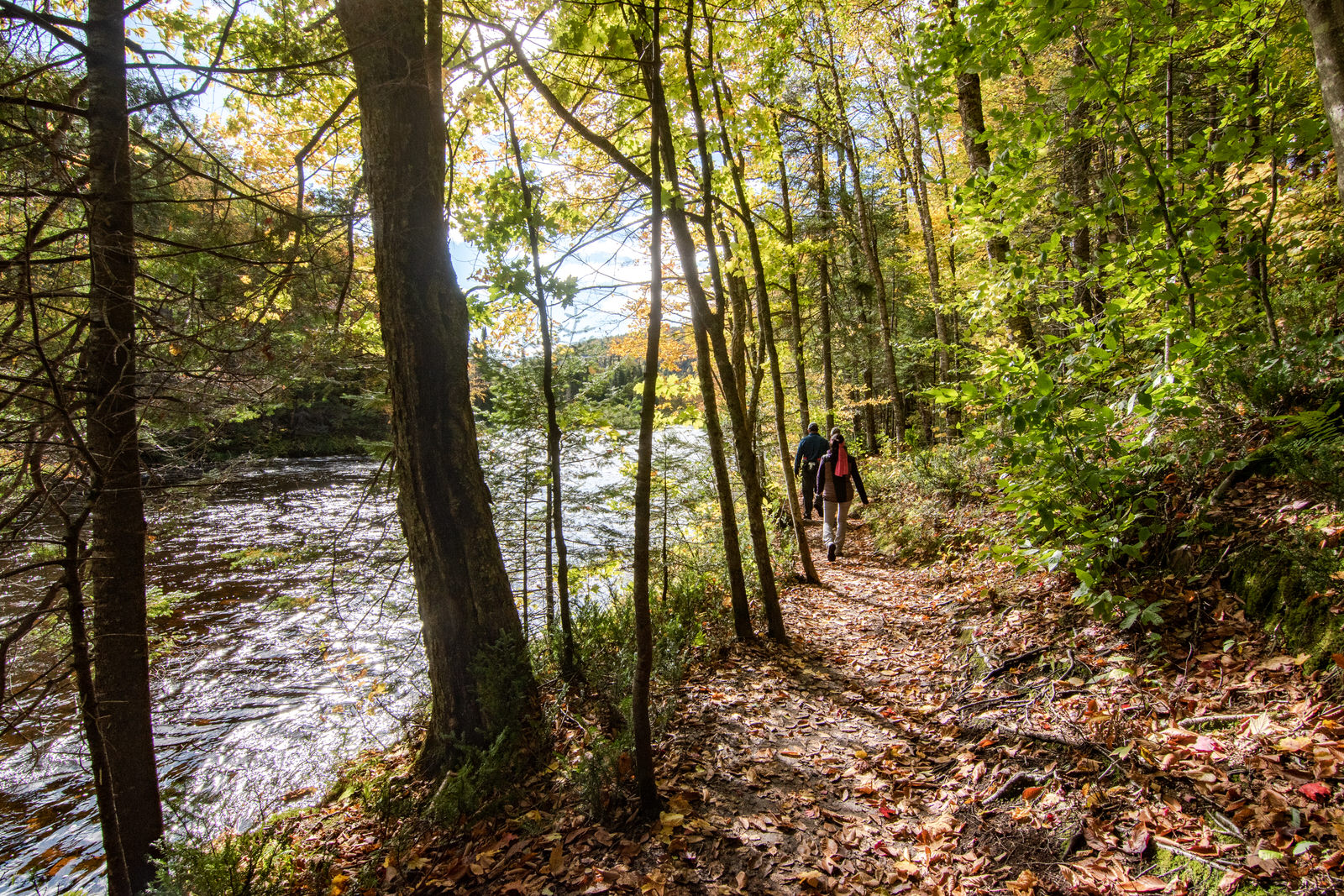 Le sentier dans cette portion est trop magnifique. Vous aurez la chance de vous promener au travers les arbres gorgés des belles couleurs de l’automne! Le sentier des Falaises est un incontournable à Vallée Bras-du-Nord!